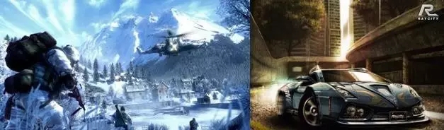 (《战地》(Battlefield)游戏画面 VS.《极品飞车16:亡命狂飙》(Need for Speed: the Run))