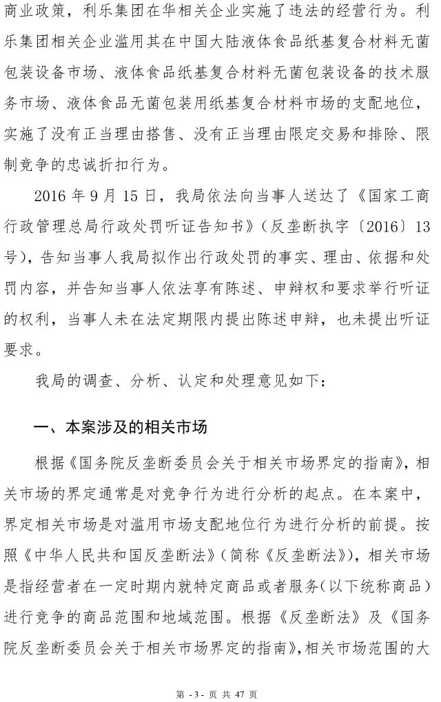 利乐反垄断案处罚决定书 日期:2016-11-17 来源:365的真正网址 作者: 浏览量: 字号: 分享到: << 1 >> 上一页 1/1 下一页 共1条记录 上一篇: 湖北PVC(聚氯乙烯树脂)销售垄断协议案行... 下一篇: 格力经销商纵向垄断协议纠纷一审民事判决书 相关文章 反垄断调查历时4年 利乐“谜案”何时了结 反垄断调查历时4年 利乐“谜案”何时了结 品胜起诉苹果垄断,五专利却被判无效 汽车业反垄断的全球动态 汽车业反垄断的全球动态